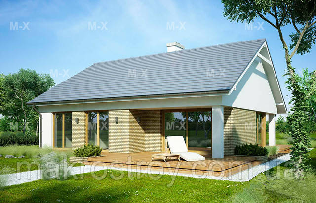 Проект МS-021 призначений для побудови дому площею 99,3 м2 у сучасному класичному стилі. Фасад будинку оброблений декоративною цеглою світлого кольору. У поєднанні із сірим дахом такий дизайн має привабливий та естетичний вигляд. Стриманість і компактність — особливість цього проєкту. Будинок наповнений атмосферою затишку та теплом домашнього вогнища, розташований у просторих кімнатах приємно та комфортно.