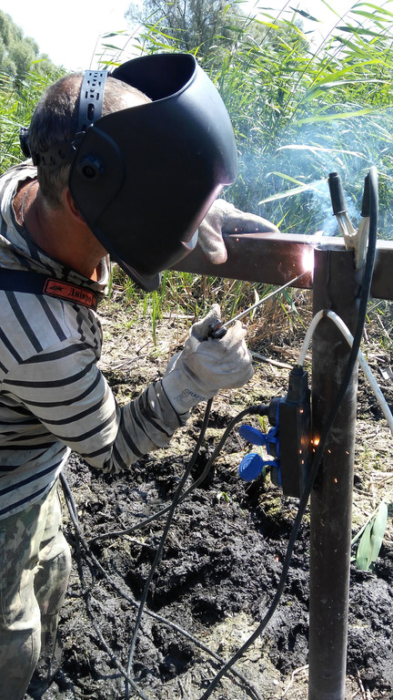 Сваривание профильной трубы к винтовой сваи.