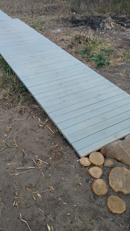 Доска сосна,ширина дорожки 1,5 метра.